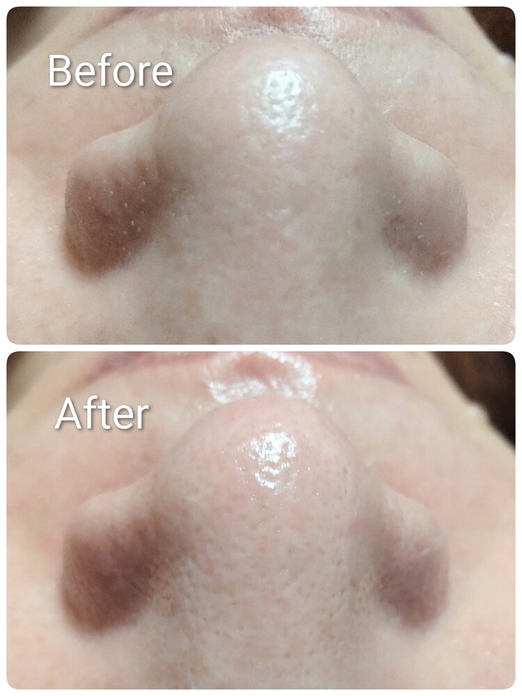 特殊なパックの浸透圧で、小鼻に皮脂が浮き出てきたところを吸引しました。